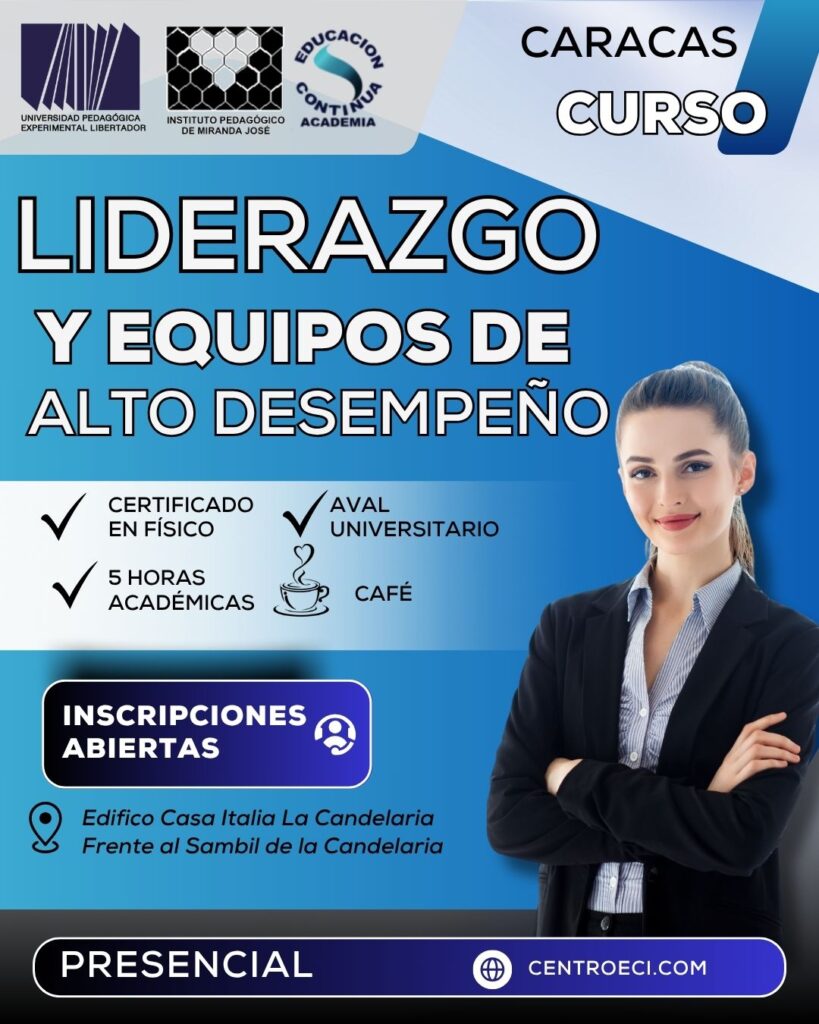 Nuestro curso presencial en Caracas está diseñado para potenciar tus habilidades y llevarte al siguiente nivel. Aprenderás a construir y guiar equipos que alcanzan resultados extraordinarios. Certificado: Avalado por el Centro ECI y la Universidad Pedagógica Experimental Libertador (UPEL).